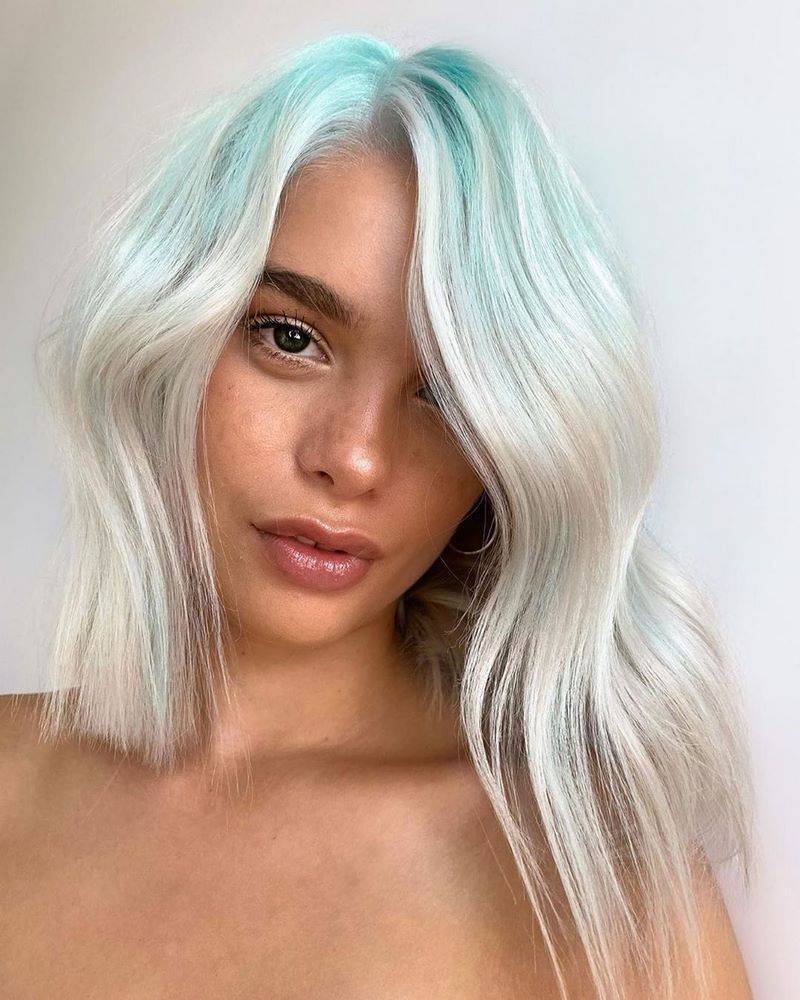 - Предельно холодный оттенок прядей выглядит скромно, но при этом ярко и необычно.