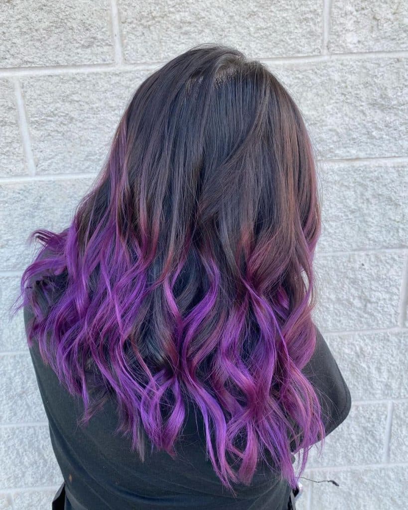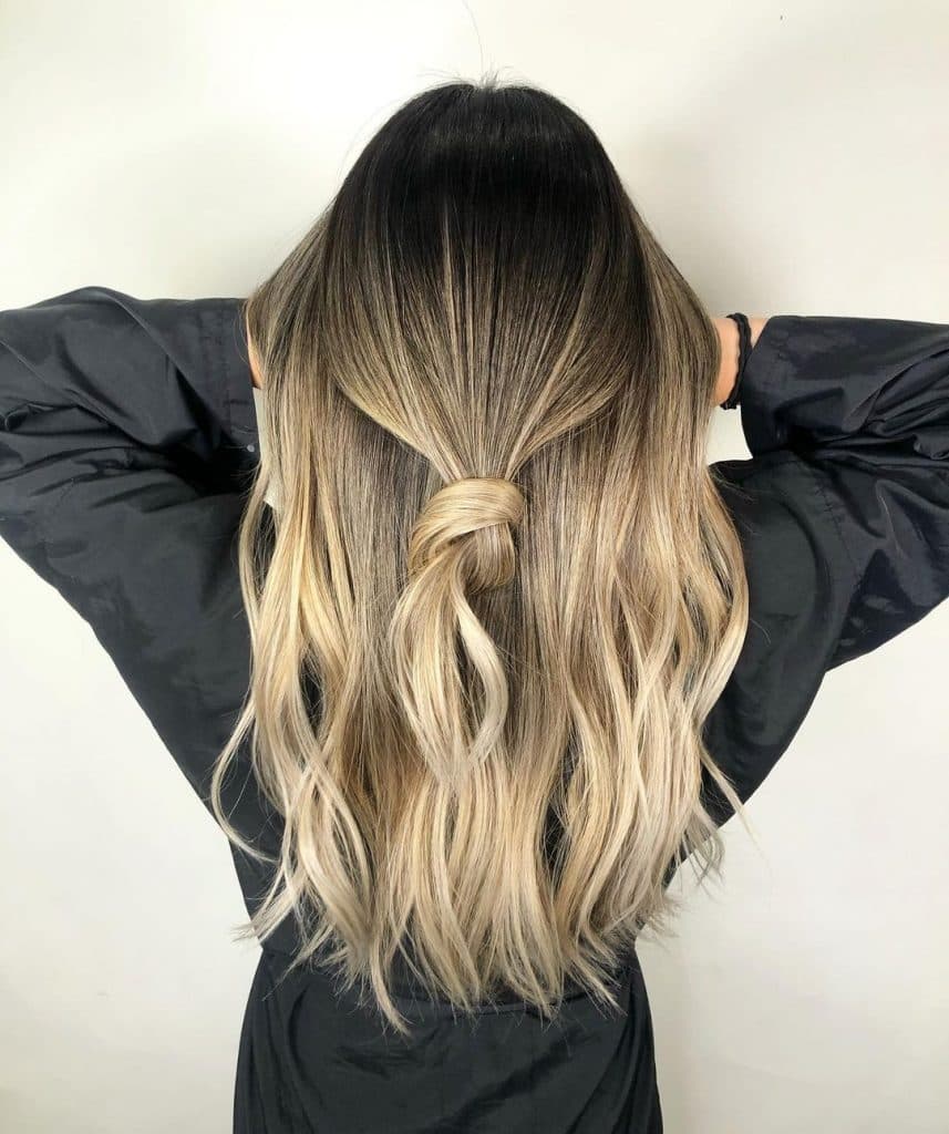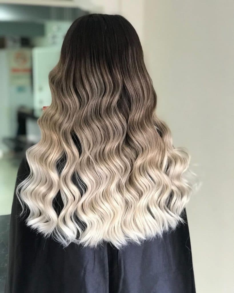 Лучше всего такое окрашивание смотрится на светлых локонах, завитых в крупные локоны. Обладательницы черных волос тоже могут его опробовать, только это займет больше времени, потому что концы придется предварительно осветлить.