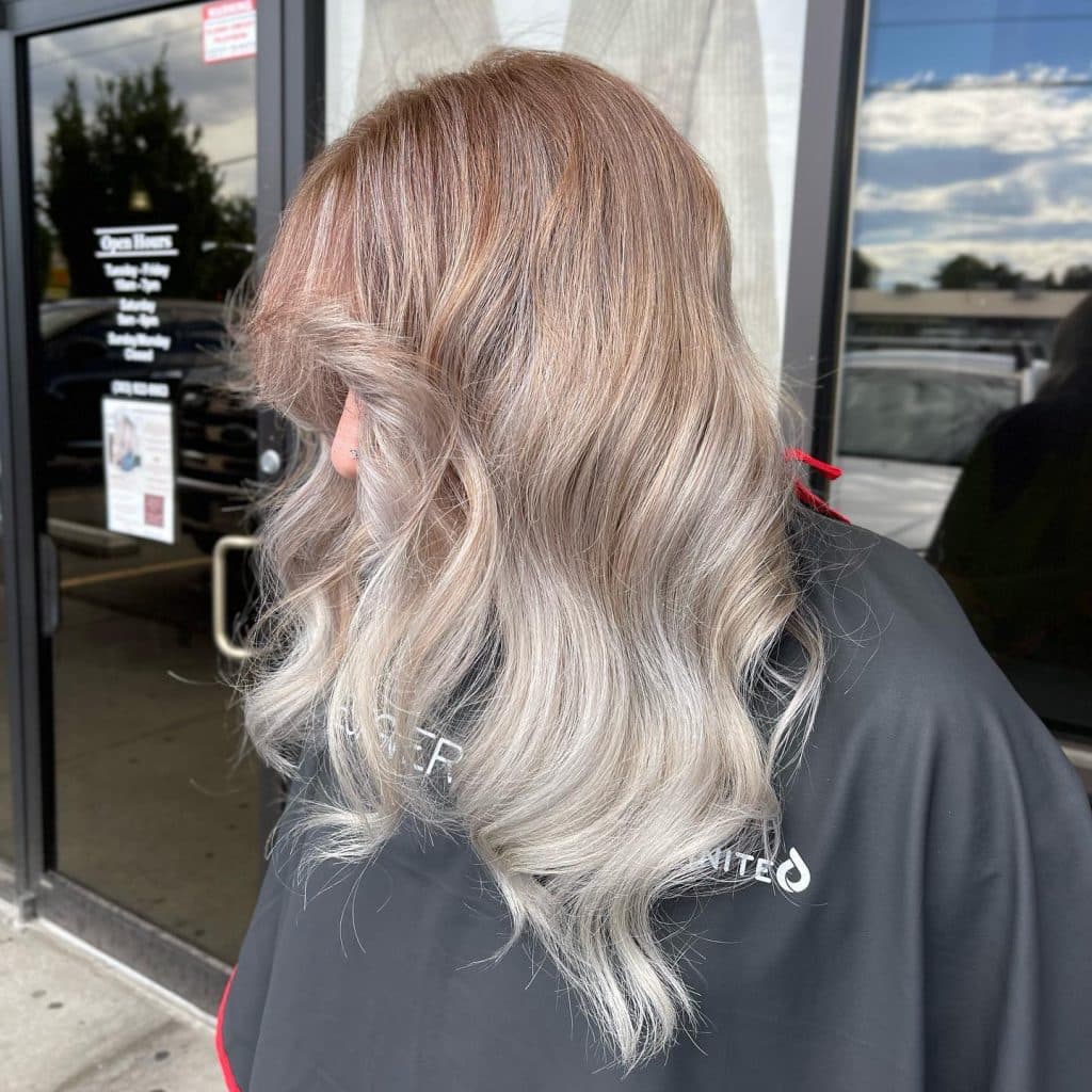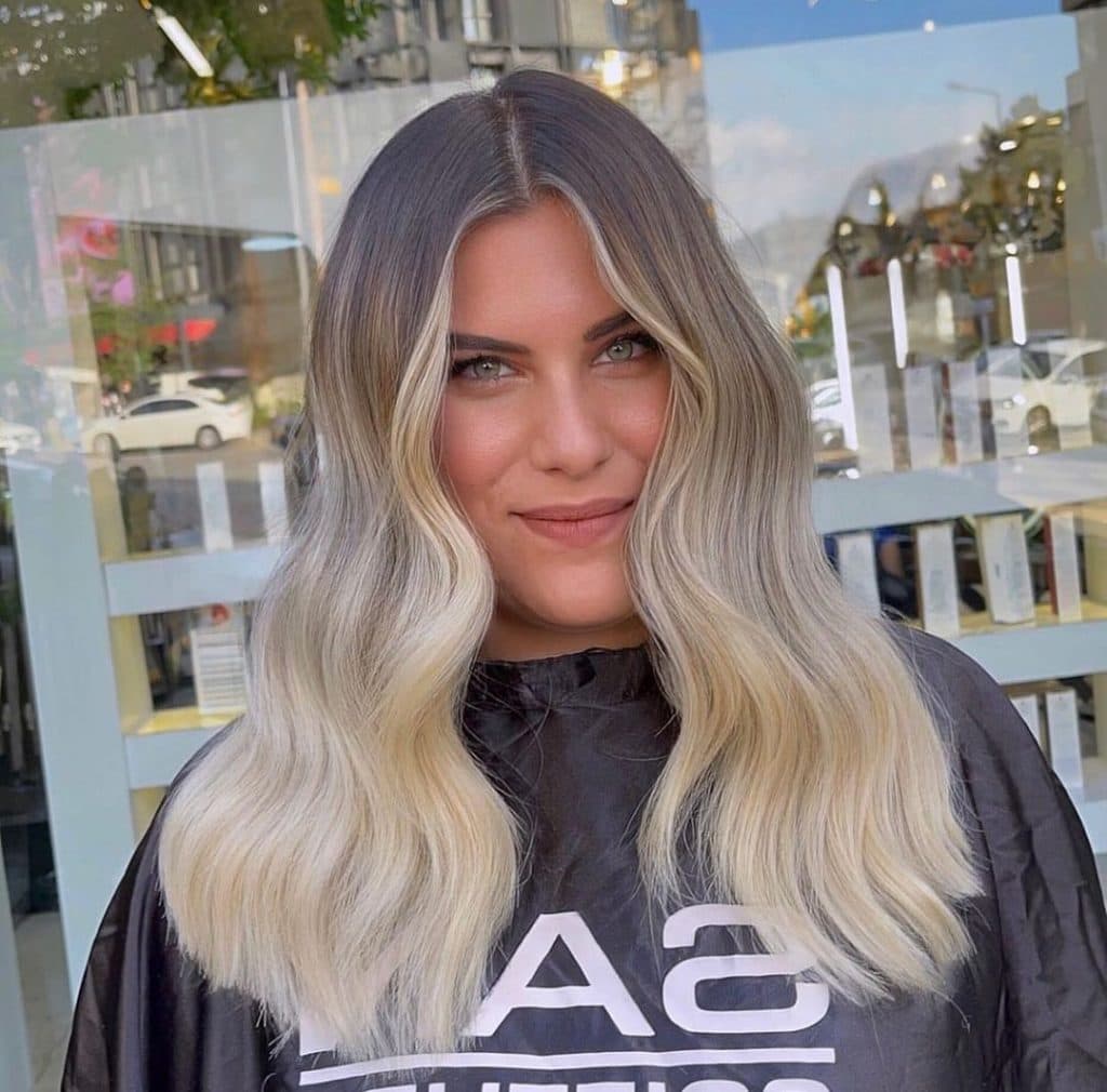 - Пепельный омбре: золотистые оттенки на корнях и серебристые оттенки на концах волос создают более сдержанный и взрослый образ.