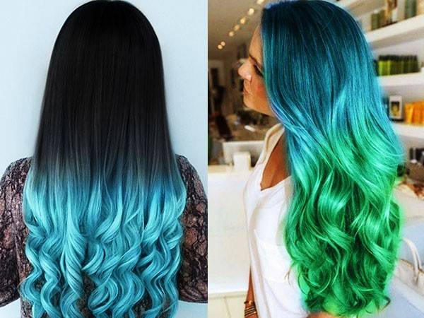 В данной разновидности градиентной техники выбирают самые необычные, яркие цвета. Здесь берутся оттенки, которые не относятся к естественным – все зависит от вашей готовности к экспериментам и фантазии. Самые решительные и экстравагантные девушки могут покрасить волосы на всю длину в смелые цвета, например, от темно-синих корней к нежно-голубому.