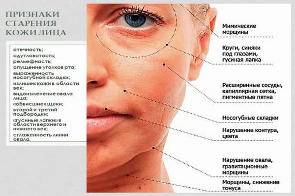 Раньше всех начинает стареть кожа лица и шеи, так как постоянно находится под агрессивным воздействием окружающей среды. Труднее всего приходится сухому типу дермы, так как она начинает увядать в первую очередь. Первые морщинки начинают появляться в уголках глаз, а затем появляются над верхней губой и в области подбородка.