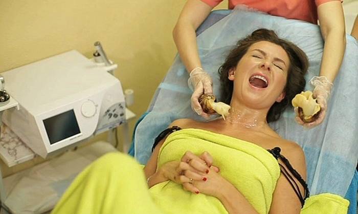 Массаж лица проводится 12-15 минут. Лицо до процедуры распаривают, скрабируют. Далее технология ничем не отличается от описанной выше. Главная задача – следить за тем, чтобы моллюск не останавливался.
