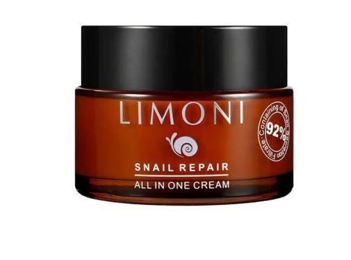 - Limoni Snail Repair. Это идеальное средство по уходу за сухой и чувствительной кожей. В составе крема содержится 60% слизи улитки. Это средство используется для осветления пигментных пятен и препятствует старению. Защищает от воздействия солнечных лучей. Консистенция крема — своеобразная, ее сложно назвать однородной. Именно поэтому его нужно не втирать, а вбивать в поры. Стоимость флакона 75 мл — 25 долларов.