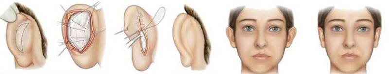 Метод Этенстрома — разрез делают за ухом, через него накладывают швы, формируя новое положение уха. Для реконструкции травмированного уха используется хрящевая ткань ребра пациента.