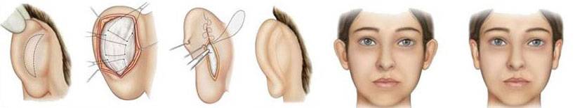 Метод Этенстрома — разрез делают за ухом, через него накладывают швы, формируя новое положение уха. Для реконструкции травмированного уха используется хрящевая ткань ребра пациента.