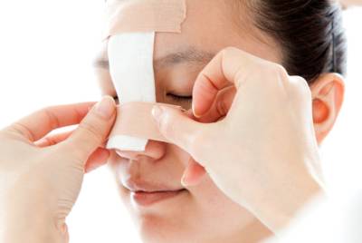 - После ринопластики хирург накладывает на нос гипсовую повязку, устанавливает тампоны в носовые ходы и пациента переводят в палату.