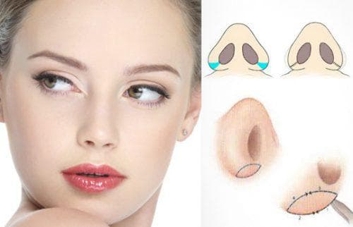 - Для сужения ноздрей хирург разрезает область колумеллы (кожной перегородки носа) и протягивает нить, подтягивая таким образом носовые отверстия друг к другу. Часть кожи, портящая пропорции, иссекается, после чего накладываются швы.