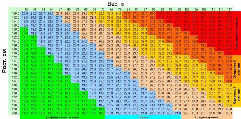 где m — имеющаяся масса тела, а h — рост в метрах (он измеряется в кг\м²).