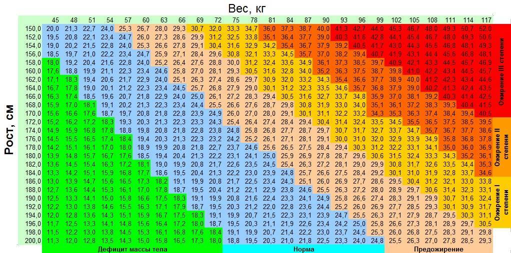 где m — имеющаяся масса тела, а h — рост в метрах (он измеряется в кг\м²).