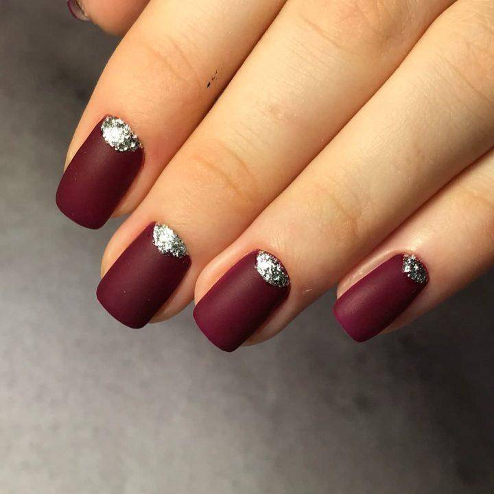 Не только сам цвет бордо будет популярным, но, а также цвет марсала, божоле, темно-сливовый, баклажан. Такие оттенки позволяют своей обладательнице выглядеть томно и аристократично. Особенно будет выделяться маникюр бордо с добавлением камифубуков, страз, блесток, битого стекла, фольги или втирки. Кстати, серебряная втирка весьма оригинально будет смотреться с цветом бордо.