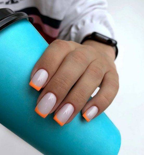 Но более популярным стало замещение классических цветов на желаемые. Кончик ногтя можно окрасить в какой-нибудь «осенний» цвет (оранжевый, желтый) и на этой основе сделать дизайн. Аналогично стоит поступить и с лунным оформлением.