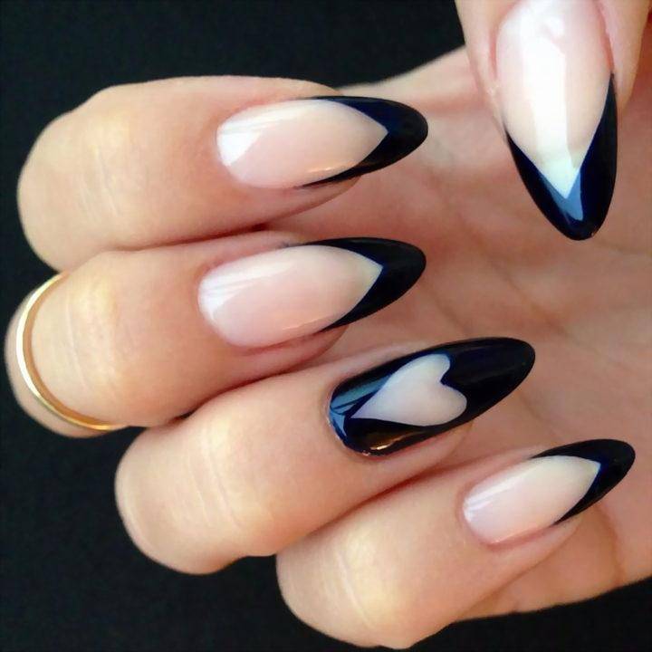 Идеи красивого френча на острых ногтях