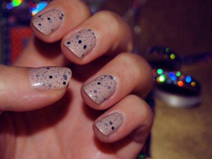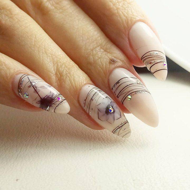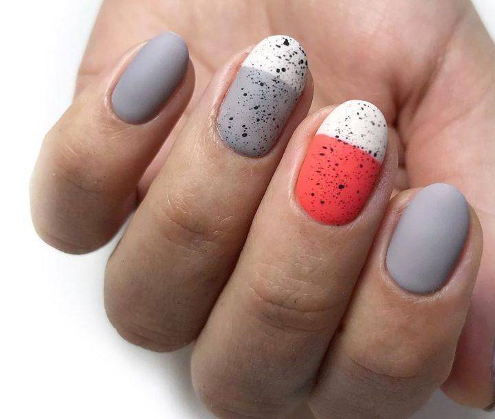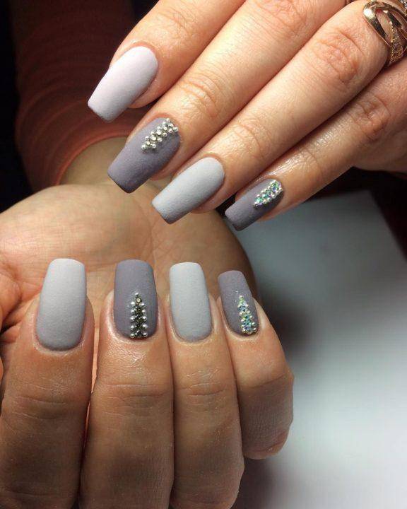 - На серой основе можно создать оригинальный мраморный узор или украсить ноготки стразами.