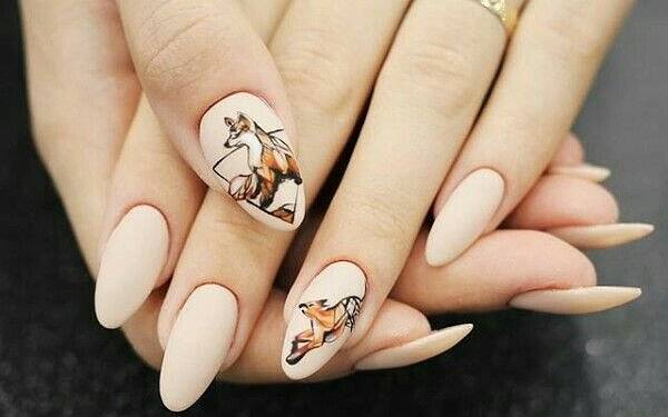 Никого не оставит равнодушным вошедшая в моду осеннего сезона роспись ногтевых пластин лисами. Модный дизайн ногтям легко делается наклейками-слайдерами или прорисовывается тонкими кисточками.