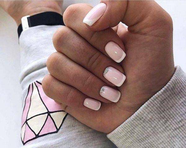 Если вы не хотите особо выделяться, розовый френч станет отличным вариантом оформления ноготков. Он подойдет нежным и спокойным леди, которые предпочитают жить в гармонии с миром. А для более яркого дизайна можно добавить рисунок мотылька на безымянный палец. С таким маникюром ваши ручки приобретут утонченный вид.