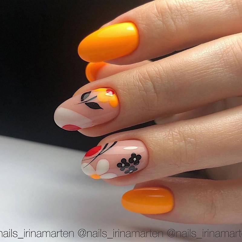 оранжевый – это традиционный цвет красок осени. Он будет уместно сочетаться с любыми техниками нейл-арта, а также способен оживить модный лук;