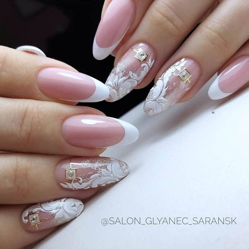 Нейл-арт таких ногтей может быть самым разнообразным. Здесь можно все: стразы, пайетки, глиттер. Рисунок – на вкус и цвет: вензеля, буквы, надписи. Такие оттенки позволяют делать френч в любой цветовой гамме, лунки разных оттенков.