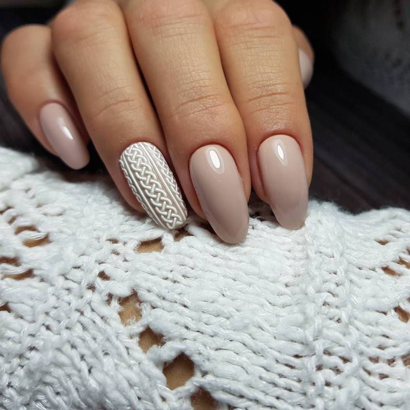 Непревзойденный и привлекательный маникюр для зимнего сезона невозможно представить без лаконичного и утонченного вязаного узора. Этот прием очень удачно сочетается с тематическими рисунками и неброскими вензелями. В этой технике хорошо смотрятся рисунки в виде милых снежинок, маленьких звездочек, оленей и т.д. Нежный и приятный маникюр можно сделать в глянцевой или матовой фактуре. Дизайн выглядит очень привлекательно в сочетании с розовым и белым. Узор лучше делать акцентом на нескольких ногтях.