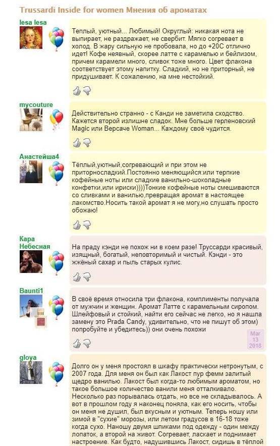 Не знаете, что такое «эффект наслаивания нот в парфюмерной композиции»? Приобретайте аромат от «Труссарди» и почувствуйте это на себе. Они являются по-настоящему универсальными и подходят каждой девушке, женщине, вне зависимости от возраста и вкусовых предпочтений. Ведь такой букет без преувеличения идеал во флаконе.