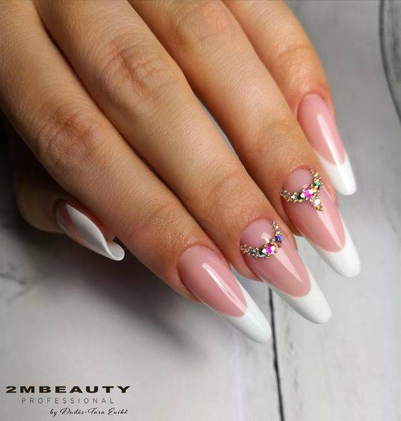 Френч на длинных ногтях: фото-идеи на острые, миндалевидные, квадратные ногти 2023-2024