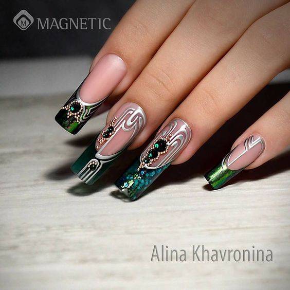 Если же это просто праздничный или обыденный дизайн, дополнить его можно такими модными приемами как инкрустация камнями или стразами.