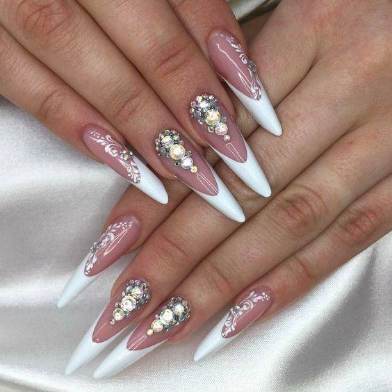 Декорирование френча стразами, камнями и художественной росписью уже довольно давно является одним из хитовых трендов в нейл-индустрии, а потому сезон 2023-2024 не станет исключением и продолжит эту добрую традицию.