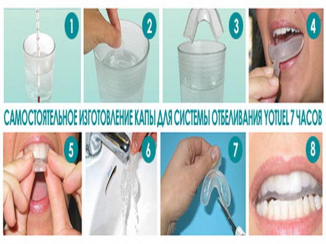Поэтому важно внимательно изучать состав продукта.. Изделия заполняются гелем и надеваются плотно на зубы, как правило, на ночь