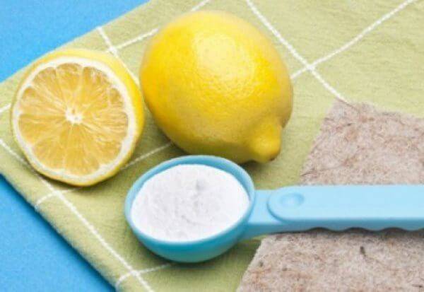 - Второй способ – сначала протирают поверхность соком либо накладывают нарезанную мякоть на несколько минут, а затем проводят чистку с помощью соды.