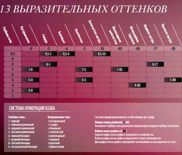 Недочет мусса Igora в отсутствии заглавий тонов, приведем таблицу соответствия нумерации