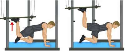 Примите упор на локтях и коленях. Одна из рук упирается в поверхность ладонью, ногой с этой же стороны делается подъем. Выпрямляйте рабочую ногу и отводите ее в сторону.