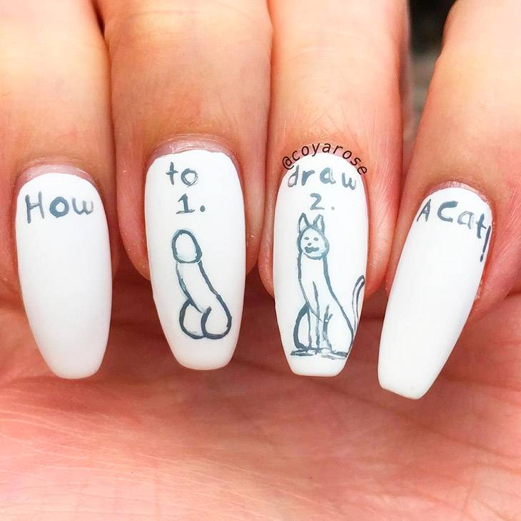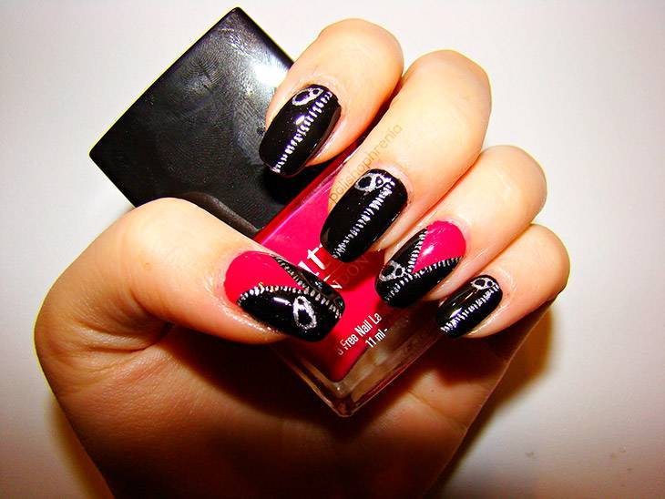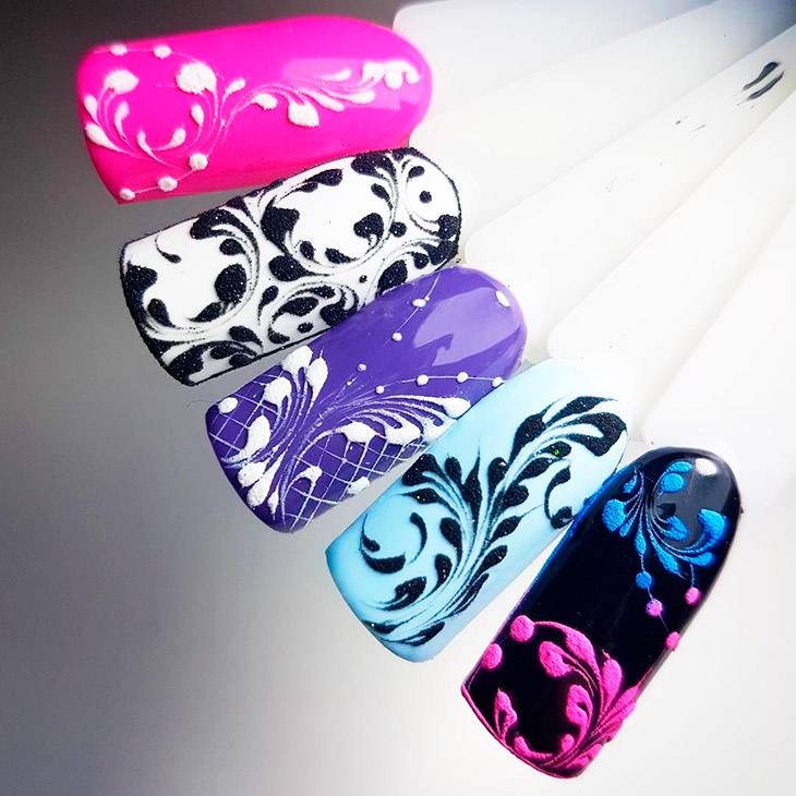 - Контраст чёрно-белого и другими разноцветными ногтями.