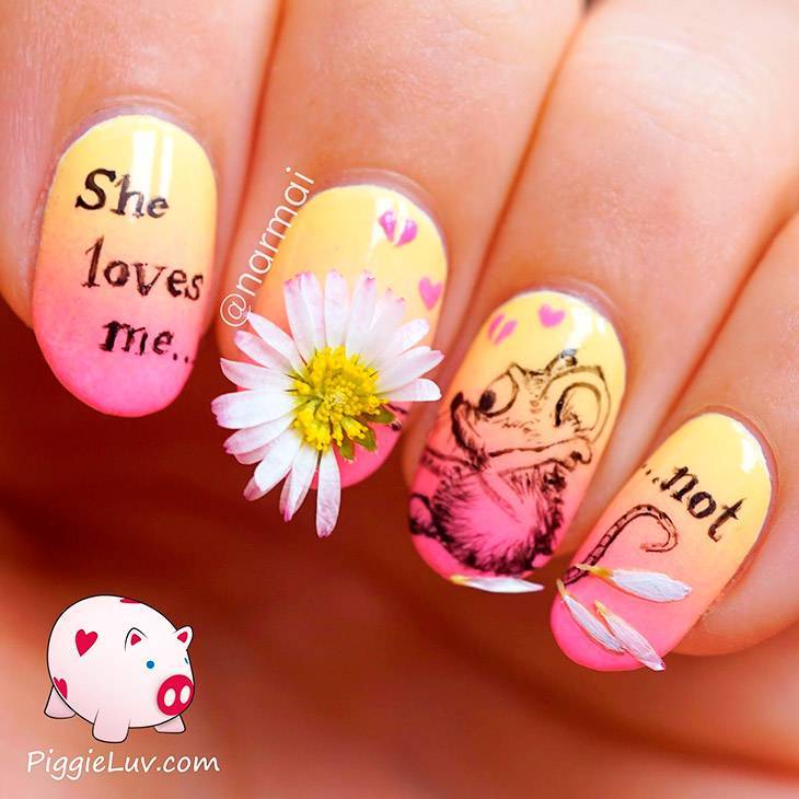 В рисунках на овальных ногтях хорошо сочтется флора и фауна, олицетворяющая природу так же, как овал. Подчеркивает естественность формы.
