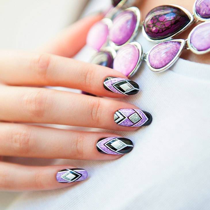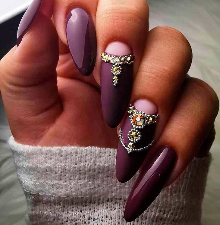 Фиолетовый и сиреневый немного спорные цвета для овала. Они «заиграют» своими красками только при грамотном декорировании кристаллами, либо рисунками.