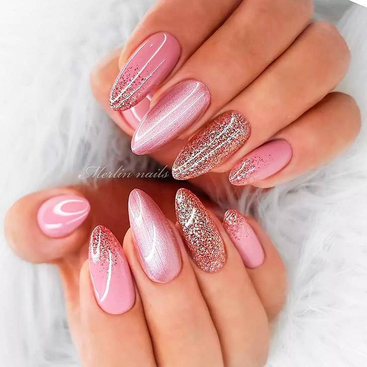 Еще один вариант с полосками блесток, но более женственный и романтичный.