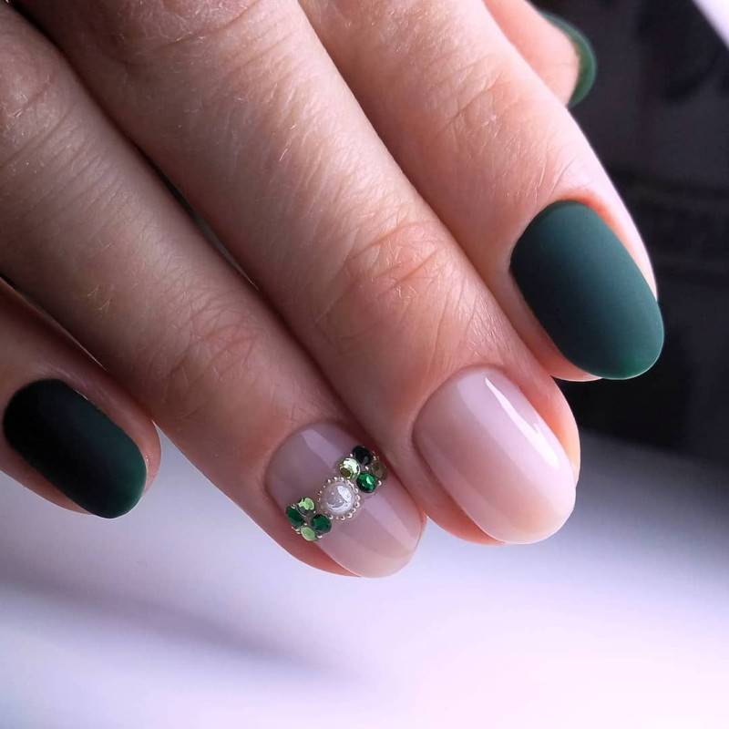 Матовый дизайн самый универсальный из всех. С таким можно показаться в офисе и на празднике. Ничего лишнего, только стиль. Но есть у такого варианта и свой недостаток – матовое покрытие хорошо подчеркивает все недостатки поверхности. Чтобы избежать этого, перед покрытием, ногтевую пластину нужно хорошо выровнять.