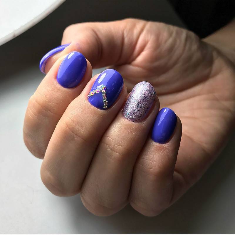 Море блесток, конечно же, станет идеальным вариантом для праздничного маникюра. Стразы могут быть совершенно разного размера и разного оттенка. Выложить их можно в интересную композицию, или же рассыпать в хаотичном порядке.