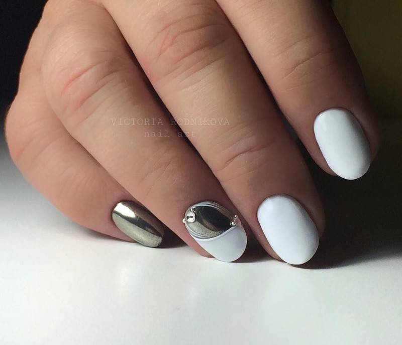 - Также красивым дополнением станет дизайн с акцентом на один ноготь.