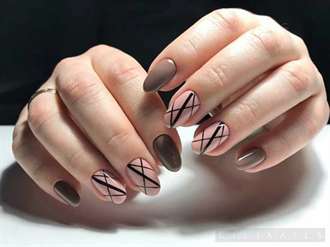 Для того, чтобы отчетливо подчеркнуть в маникюре наличие негативного пространства лучше всего использовать глубокие темные оттенки, такие как черный или шоколадный, например.