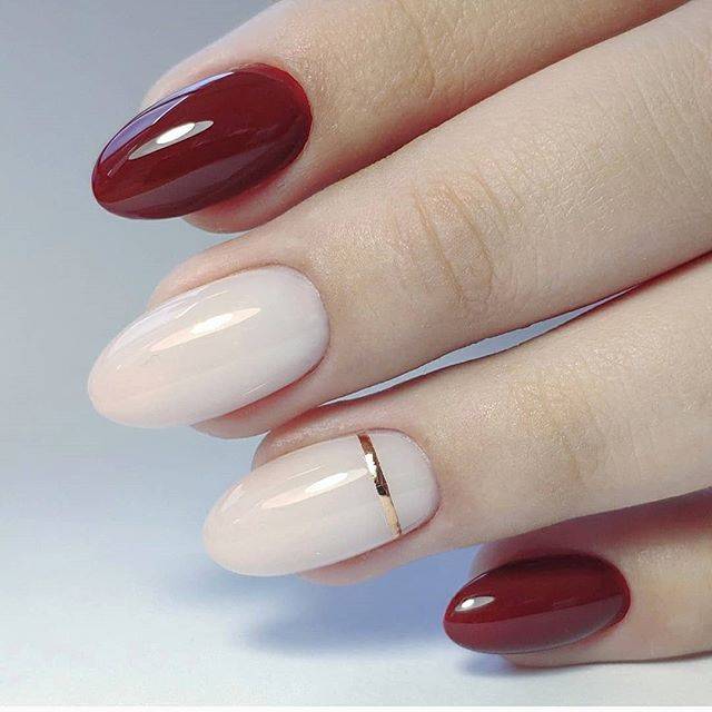 Для более раскрепощенного и рокового образа можно использовать сочетание золота с темно-бордовой или сливовой основой. А вот что касается хитового в этом сезоне мраморного маникюра, явным фаворитом станет имитация натурального камня, которая будет выглядеть максимально реалистично.