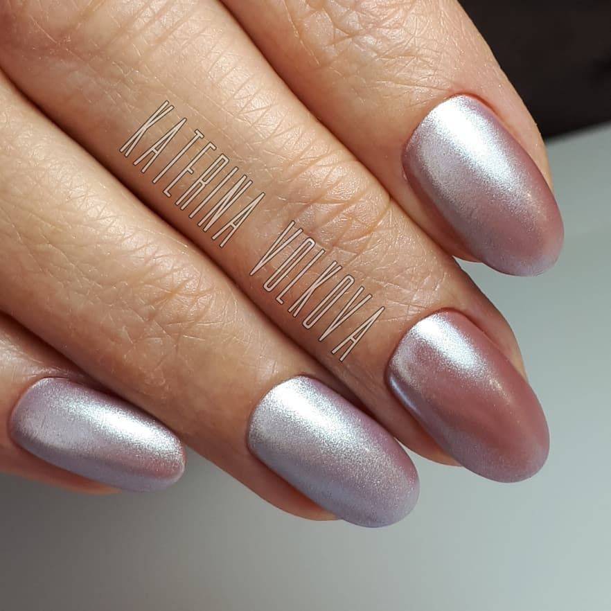 Модный светлый маникюр с жемчужной втиркой уже несколько сезонов остается популярным. Прелестный и очень нежный вариант светлых тонов с переливом придется по вкусу многим.