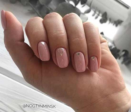 Примечательно, что короткие овальные ногти смотрятся весьма гармонично и естественно, а потому лучшим вариантом дизайна станет маникюр нейтрального оттенка с лаконичным дизайном.
