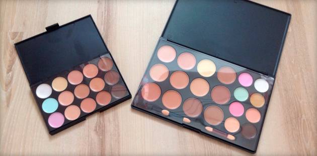 В палетке обычно присутствуют коричневые и бежевые оттенки, но можно встретить наборы с розовыми, салатовыми и даже чёрными консилерами.