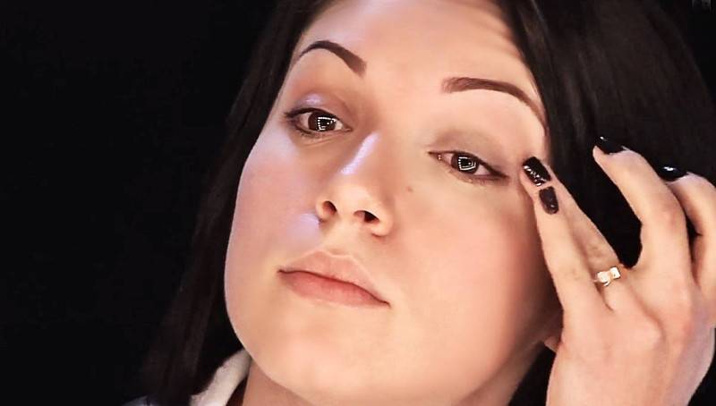 - Обязательно высветляют участки под глазами и в уголках. Первое делает глаза больше, второе маскирует морщинки.