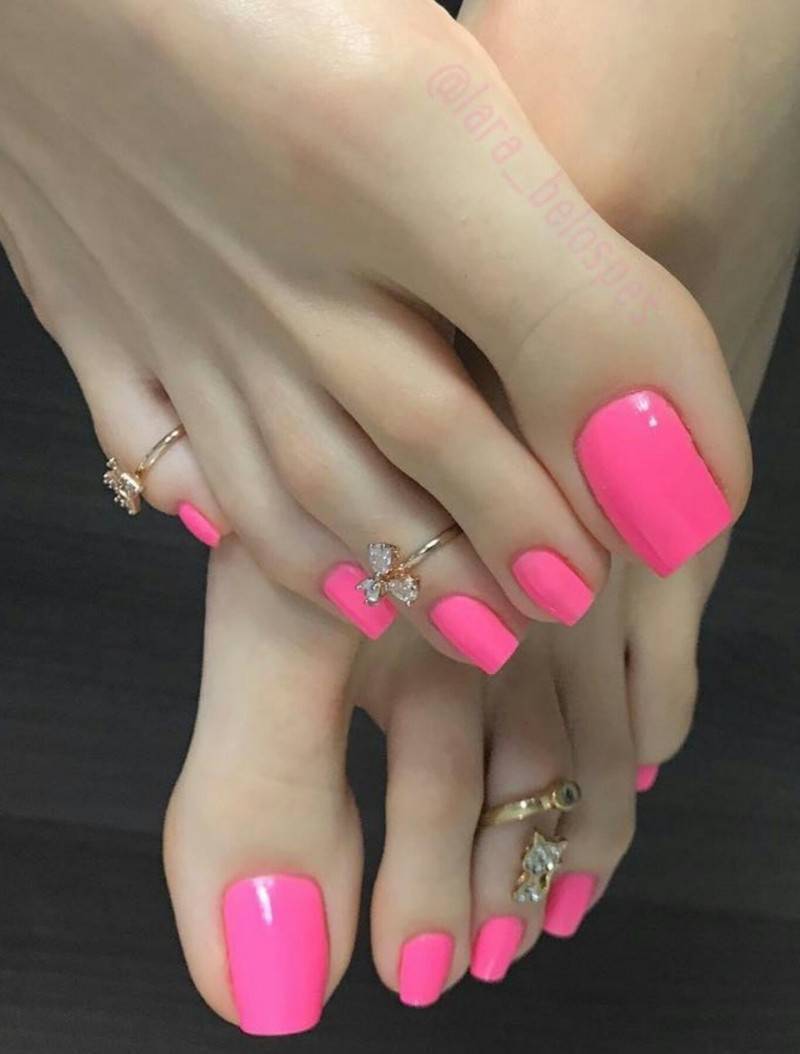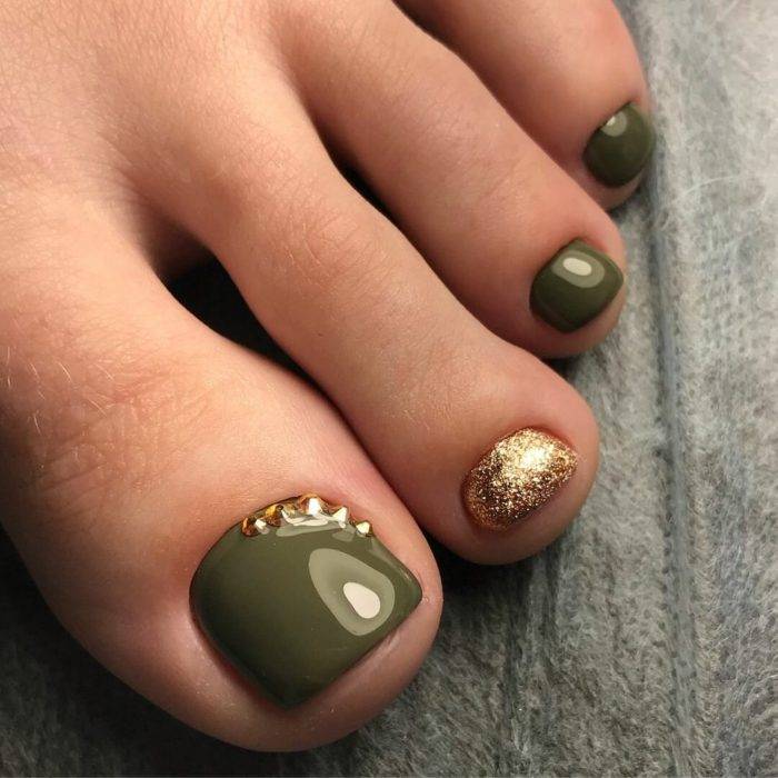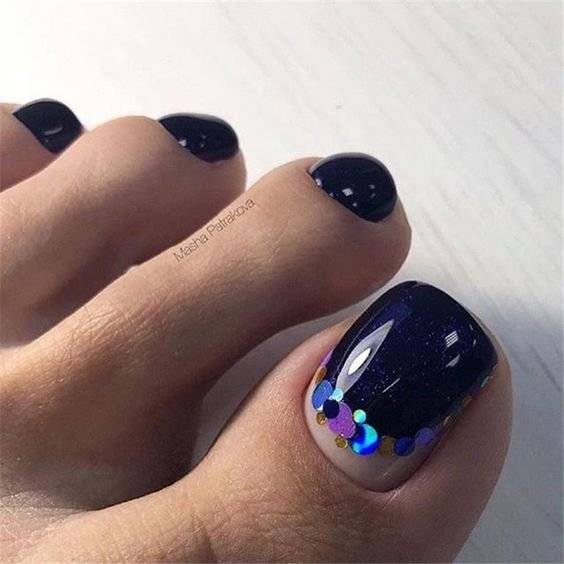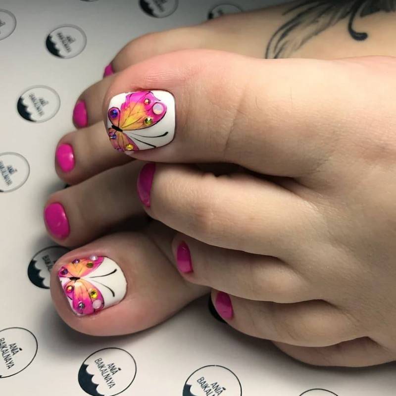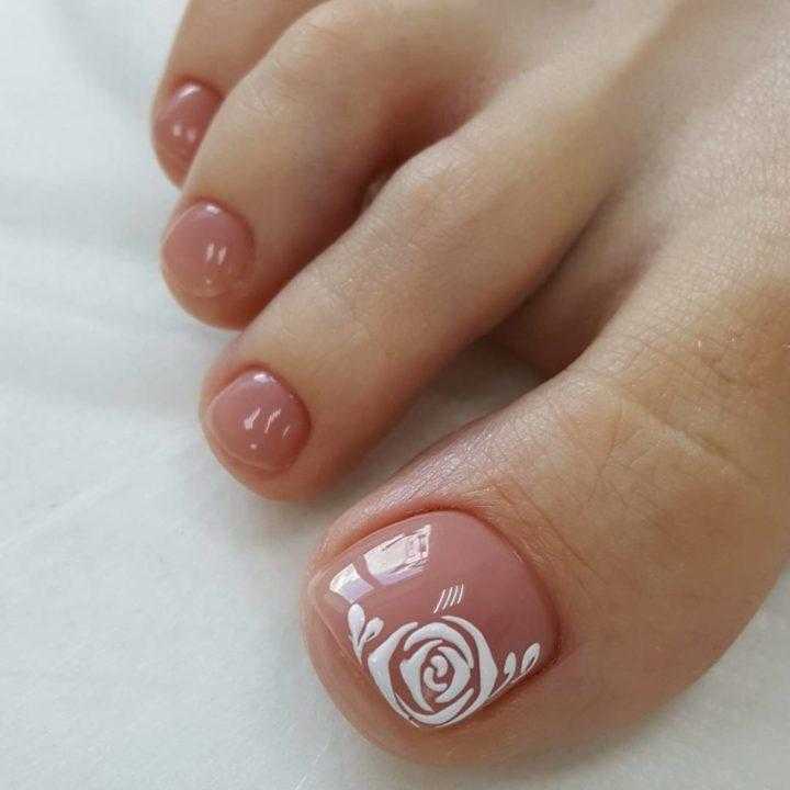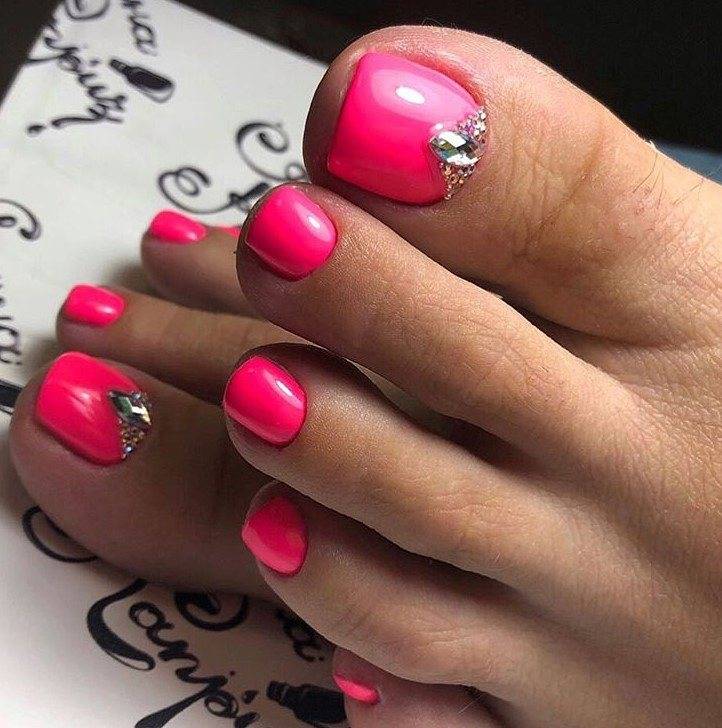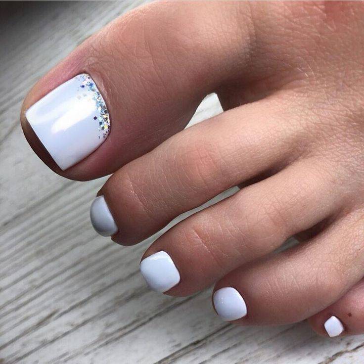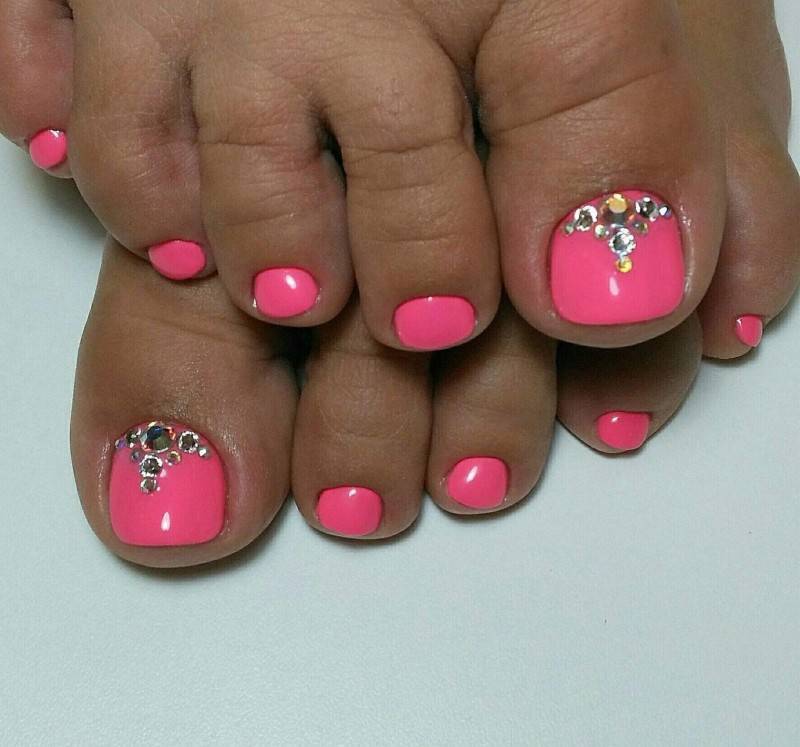 Эта идея для педикюра сочетает в себе блестящий опалесцирующий розовый на большом пальце и простые розовые ногти. Этот дизайн для тех, кто хочет похвастаться уникальным педикюром на своих ногах.
