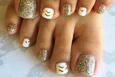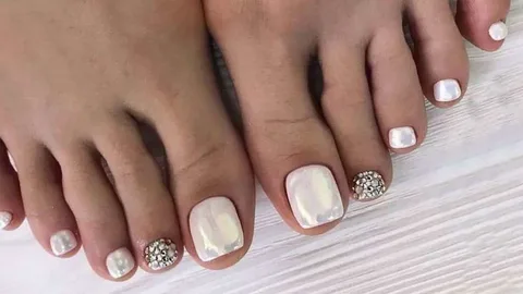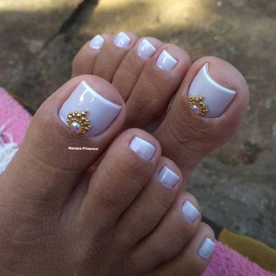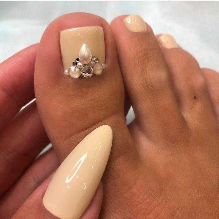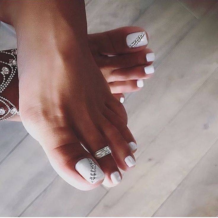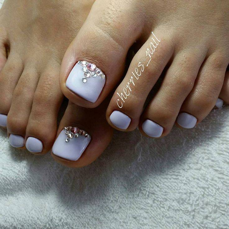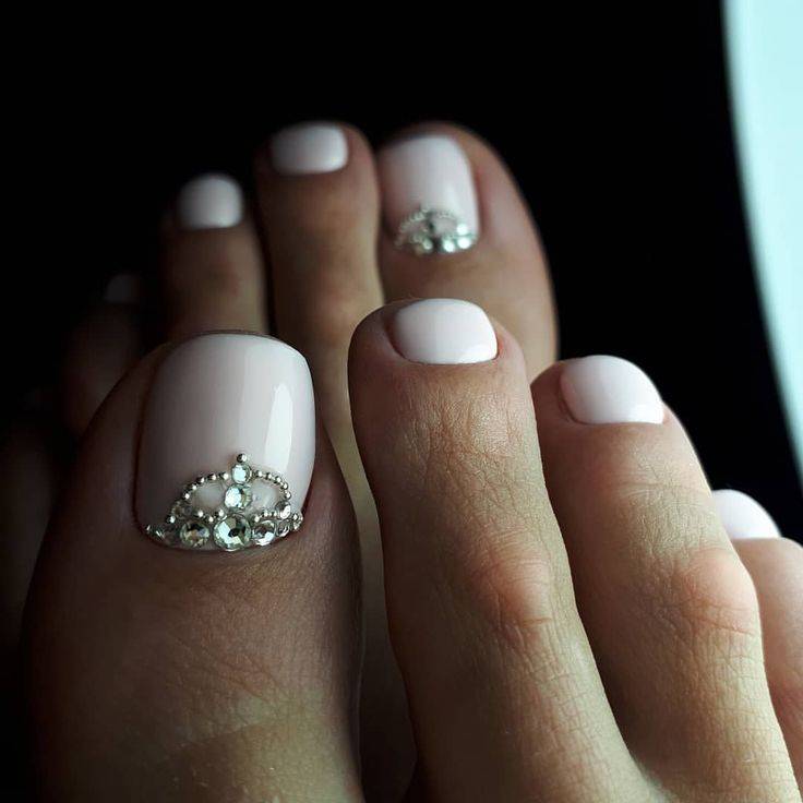 Откажитесь от перламутра, шиммера и других сложных украшений. На ногах ваш дизайн все равно не будет виден, а сам образ будет смахивать на тренды 80-х годов.