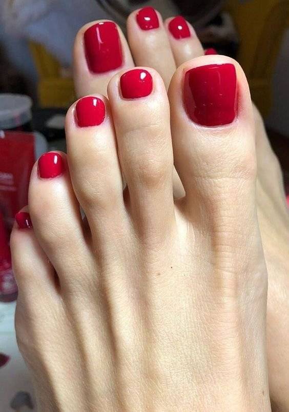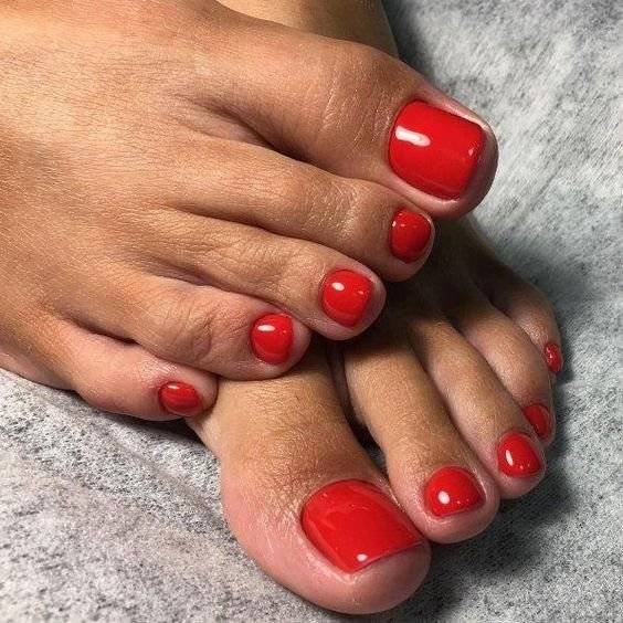 Это один из лучших вариантов классического и простого педикюра. Все любят ярко красный педикюр. Это позволяет дополнить любой скучный наряд и заставляет вас чувствовать себя сильной и привлекательной. Это простой дизайн, который отлична подойдет всем.
