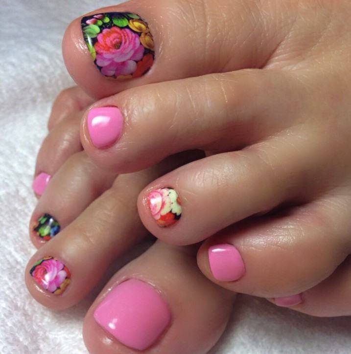 роспись и флористические рисунки – такие варианты декора идеальны на лето, они сразу преображают ножки девушки;