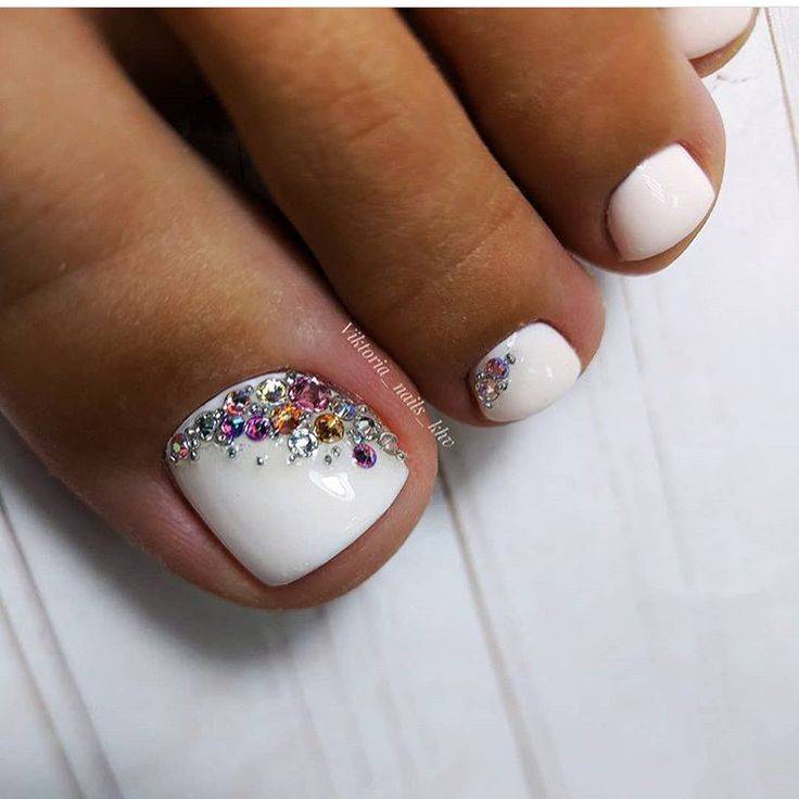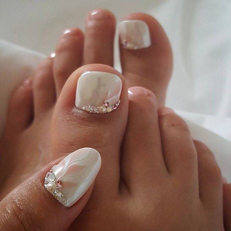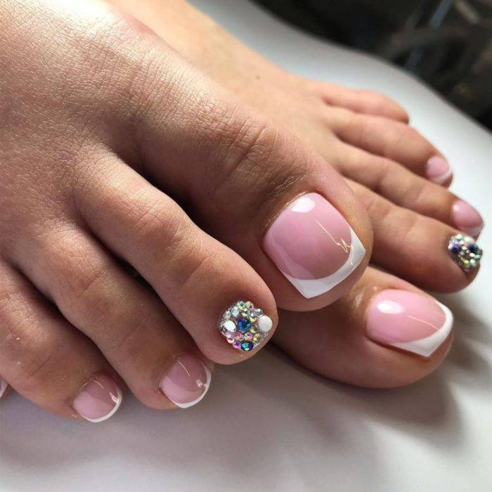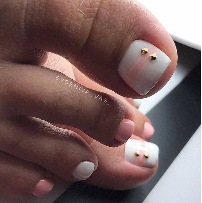 Модные тенденции стремятся к разнообразию декора, поэтому светлый педикюр можно украсить такими эффектами: