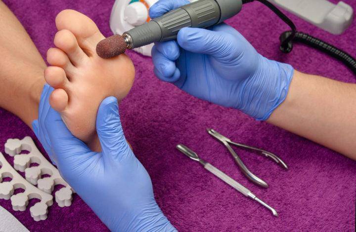 Если за ногтями вы легко сможете следить за длиной ногтей, то убрать кутикулу будет уже гораздо сложнее. Мастер производит педикюр при помощи машинки с разными насадками-борчиками, каждый из которых помогает удалить кутикулу, привести пятки в порядок и сделать пятачок стоп более гладким.