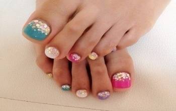 Тем не менее, основные тенденции все-таки просматриваются. Стилистами предложены красивые и спокойные оттенки лаков, ежедневное применение которых не будет вызывать раздражения. К ним относятся аквамарин, легкая мята, великолепная бирюза, нежно розовый цвет. При оформлении можно использовать любое дизайнерское решение. Однако, основной упор делается на цветочный принт, горошины, всевозможные полосы. Летний педикюр на следующий сезон предусматривает украшение камнями, стразами и лепкой.